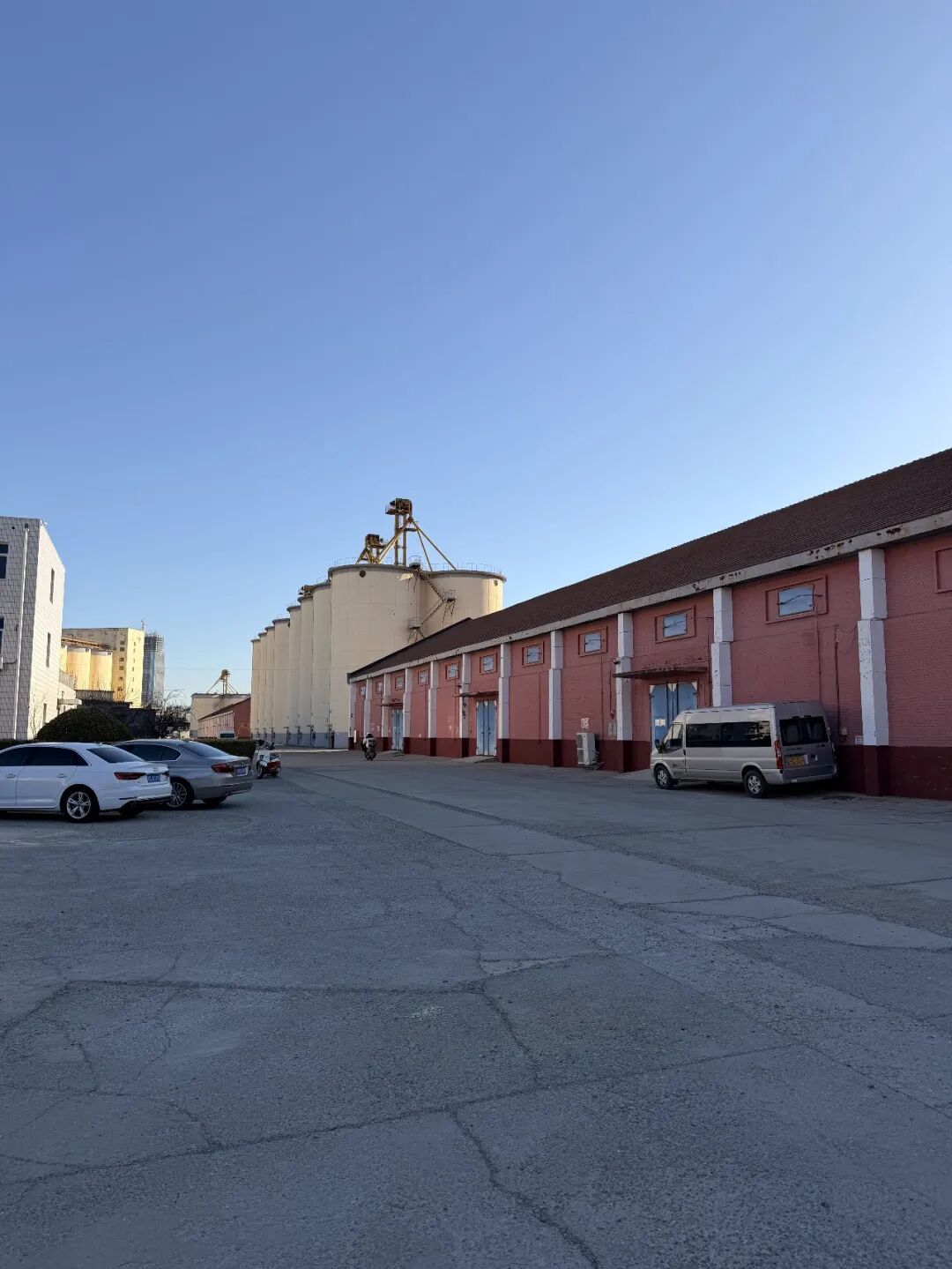 项目现状包括15栋方库,层高6-10米;筒仓61个;办公楼2栋;平房1栋。