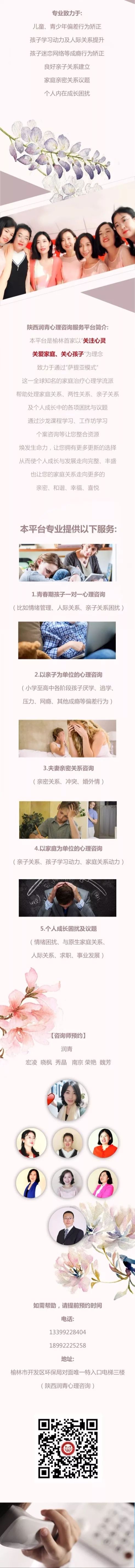 润青心理机构合作,榆林组团有优惠,欢迎来电咨询!(王老师:13399228404 刘老师:18992225258 张老师:15291820406)