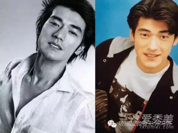 男明星们整容下手还好,大多数都是割双眼皮,垫个鼻梁什么的,看看金城武割双眼前后对比照,小小的双眼皮让男神颜值变化这么惊人