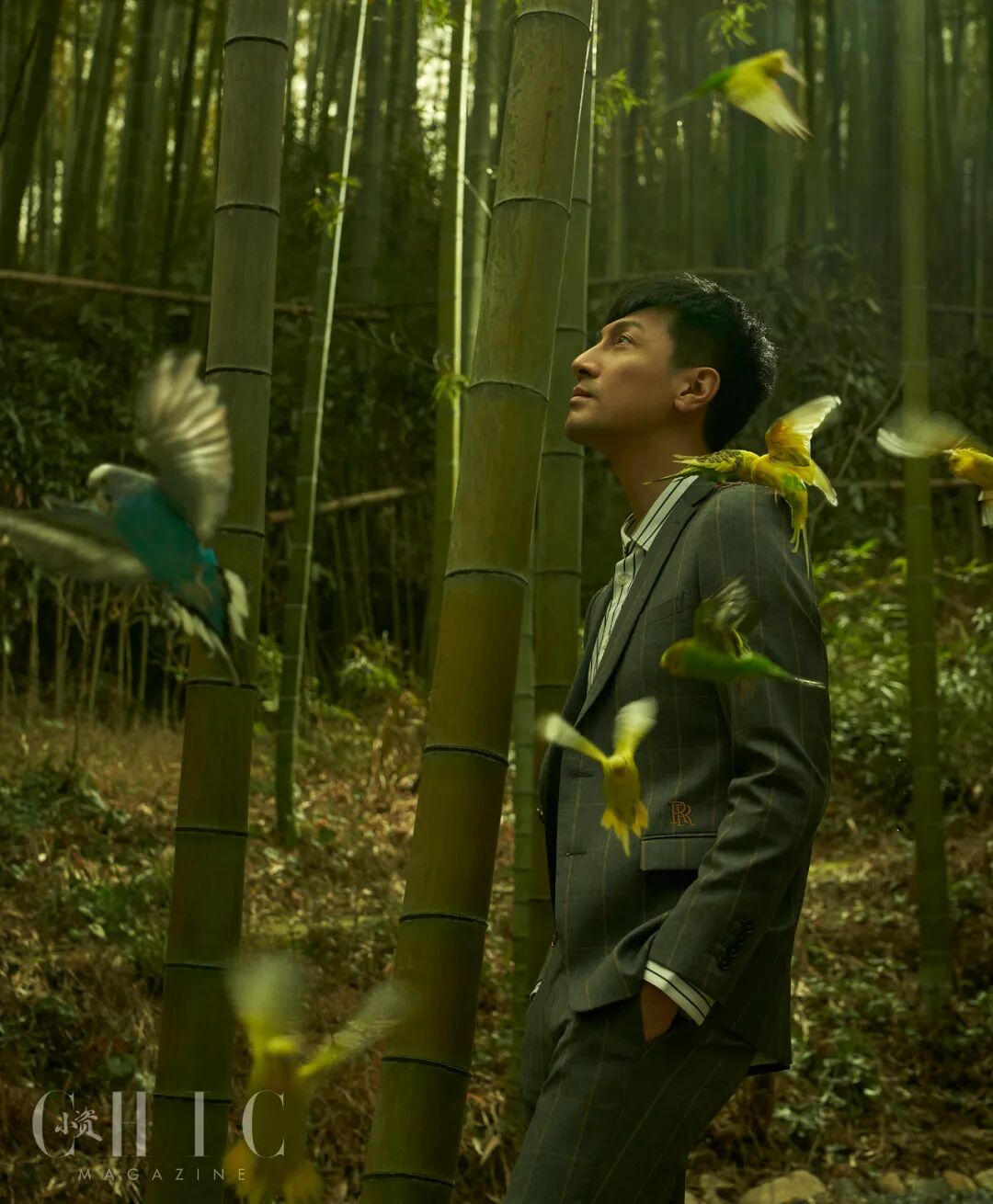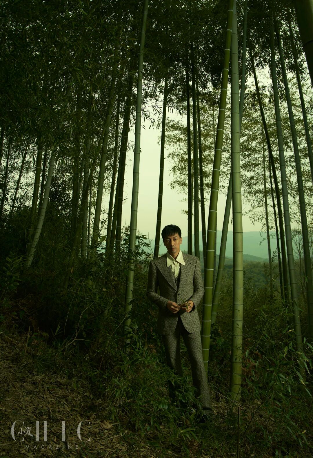 清风拂来,山林泰然自若。站在竹林间的张鲁一,正用心感受着此刻的悠闲,聆听自然。他沉稳的气质恰符合这光影斑驳的静谧之地,泥土的气息和悦耳的鸟声环绕在他周身,仿佛掉进了另一个时空,城市的喧嚣和繁忙远远地被抛却。当下的他,是惬意舒适的。