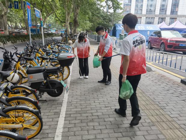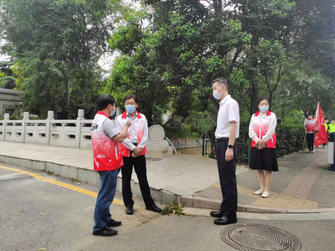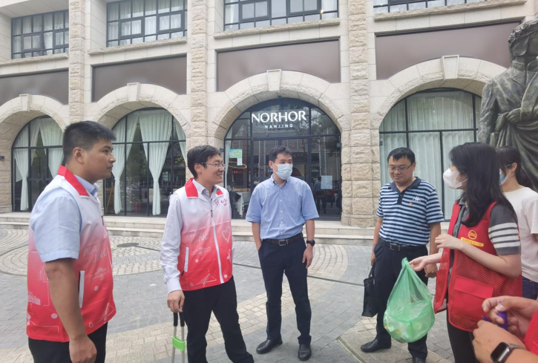 荣飞一行首先来到新街口街道长江路社区,青年志愿者、红领巾志愿者60余人正分成三组开展垃圾清理、单车归队等环境整治志愿服务。荣飞积极参加志愿服务活动,并就“团团结对”助力全国文明典范城市创建工作与相关团组织负责人、青年志愿者进行交流。