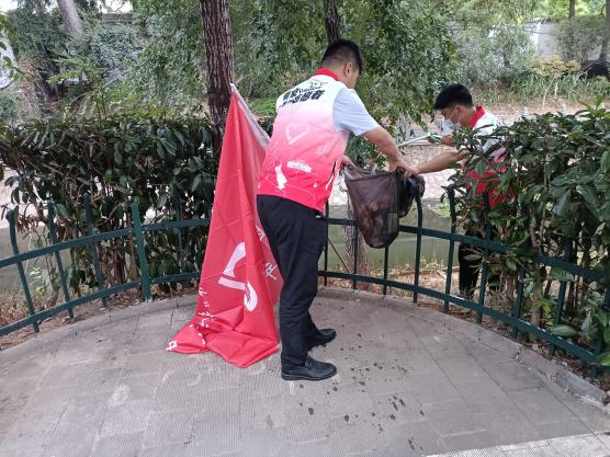 最后,荣飞一行来到梅园新村街道明故宫社区,社区团支部和结对的南京青风志愿者服务中心团支部,正在组织青年志愿者20余人沿玉带河开展河道清理志愿服务。