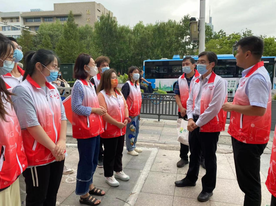 随后,荣飞一行前往北京东路与太平北路交通路口,调研文明交通志愿服务工作,慰问正在路口值守的青年志愿者。荣飞对文明交通志愿服务给予充分肯定,向大家赠送了防暑物品,叮嘱广大青年志愿者在做好志愿服务的同时,也要注意个人防护。