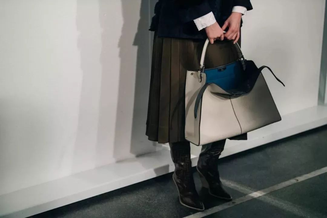 但当你打开它,包包内部的材质就会裸露出来,与外部的皮料形成对比,廓形也会从严肃变得随性起来,整只Peekaboo的气质就会发生改变,被赋予更多的个性。而这种对撞的二元性一直是Fendi所追求的,仅仅是这样一个小动作,就能从一只包上收获两只包的满足感。