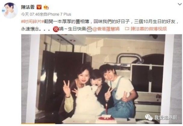 她的好姊妹陈法蓉就在微博上载同是10月生日的娟妹、黎美娴及自己合照组成的短片,她留言:“翻开一本厚厚的旧相簿,回味我们的好日子,三个10月生日的好友,永远怀念。。。️娟~生日快乐!”