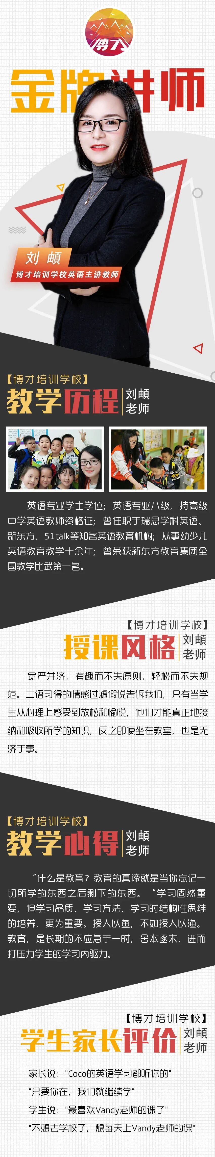 刘頔老师多年担任博才英语学科组长。她精心备课,资源共享,凡事冲在最前面,带领备课组老师把每项工作做精做细。她始终保持谦虚好学的态度,与学科组老师团结协作、交流沟通,寻求教学新突破。