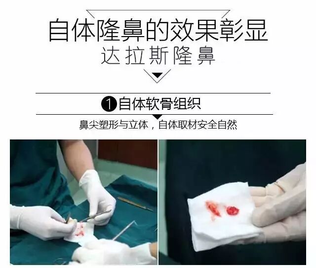 达拉斯隆鼻根据鼻子各部位的生理特征,利用自体软骨、筋膜组织良好的生物相融性,与假体材料组合运用,结合不同材料特性优势互补,让塑形效果达到最佳。通过这种方式,还可以很好地解决鼻尖容易外突、张力大的问题。