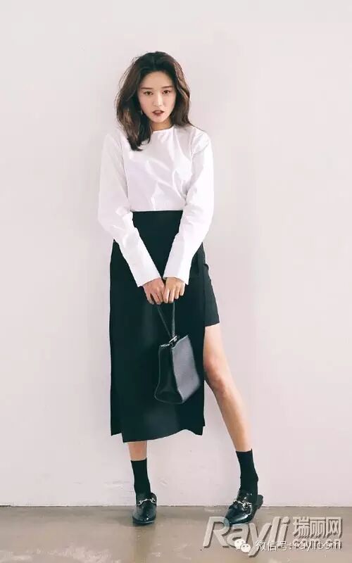 即便是私服搭配,韩佳人还是离不开万能的黑白配。