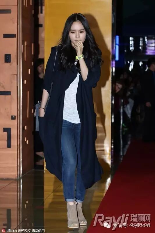即便是私服搭配,韩佳人还是离不开万能的黑白配。当地时间2013年5月27日,韩国首尔,韩佳人出席电影《隐秘而伟大》VIP首映礼。韩佳人黑色大衣 搭配白色上衣,基本款牛仔裤就衬托出女神质感。