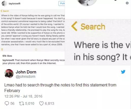 最有名的事件就是,坎爷的新歌《Famous》里面,写到:‘如果不是我,Taylor也不会红’。