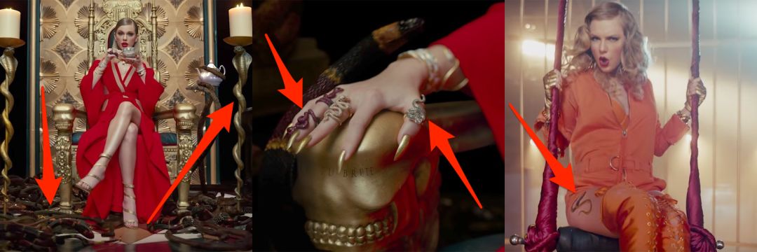 蛇型的图案,也是之前形容霉霉的表情包,这新专不仅满足了粉丝们的等待、还让八卦观众们一次性看完她和音乐界大咖们的恩怨。