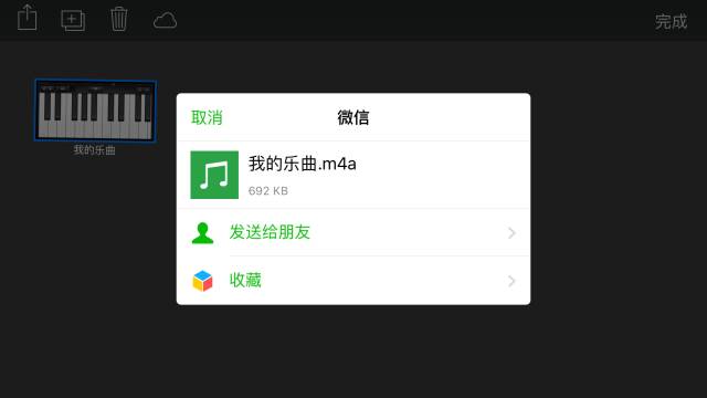 2.乐曲会被导出,可以选择分享给朋友或者收藏到微信