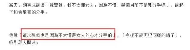 而赵寅成曾在分手后表示,自己不太懂女人,以后不会再犯同样的错——