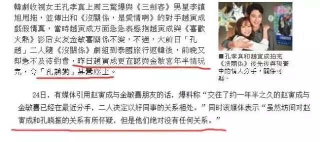 赵寅成在与金敏喜交往之前,曾因和宋慧乔合作《那年冬天,风在吹》传出绯闻。