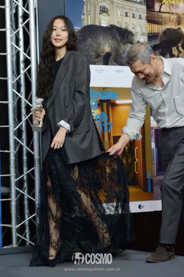 曾凭借《独自在夜晚的海边》一片获得了第67届柏林电影节影后桂冠,领奖时直接穿着有妇之夫洪尚秀导演的西装就上去了。