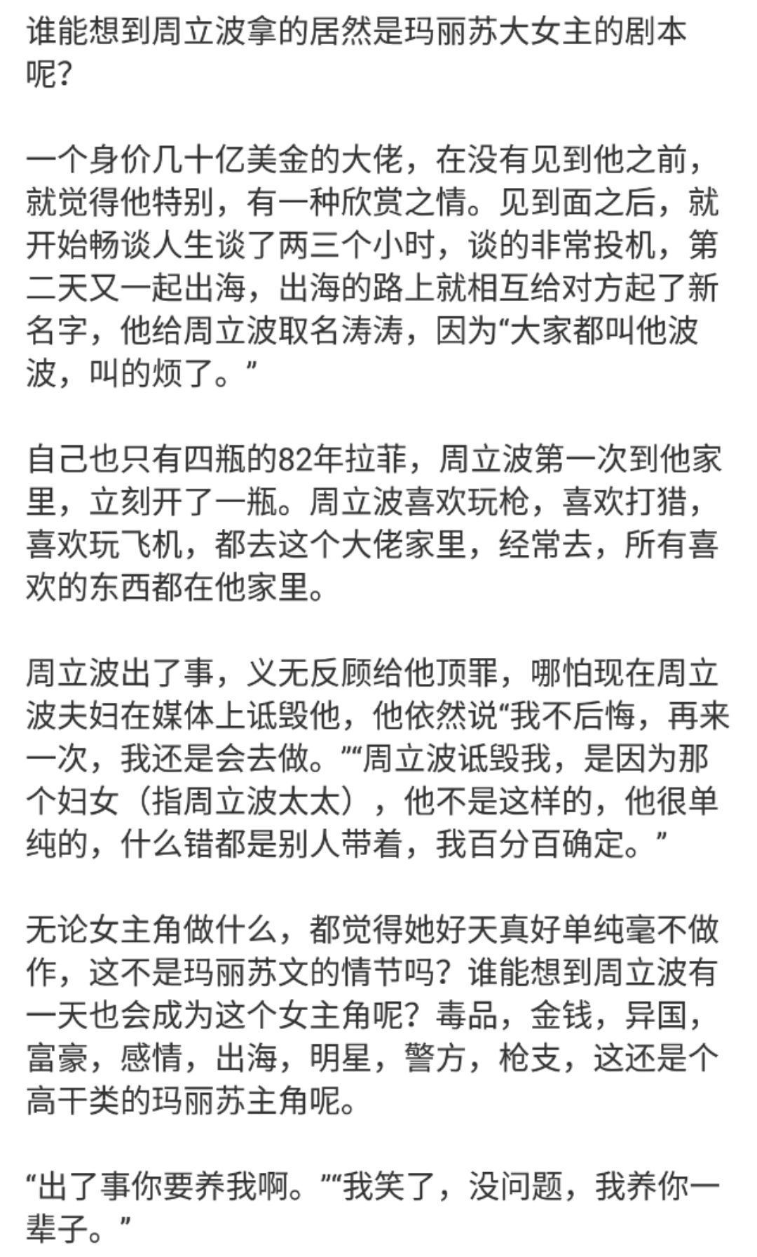 再后来,周立波在国内事业一落千丈时出国游玩又结识了军军,一位美国超级富豪,男性嘻嘻嘻嘻。