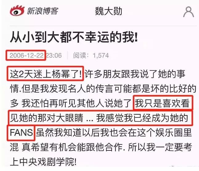 虽然两人是同行,但魏大勋一直都是杨幂的小迷弟。1989年的魏大勋早在2006年就公开表示自己很喜欢杨幂。