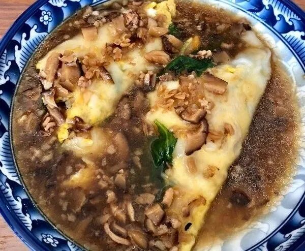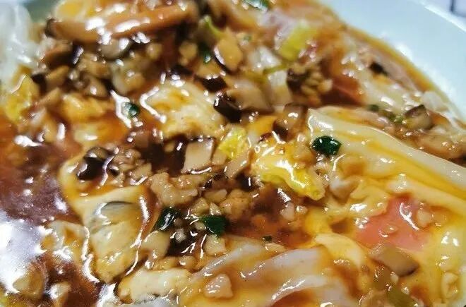 肠粉馅料:鸡蛋1个、白菜碎、猪肉末、香菇片。