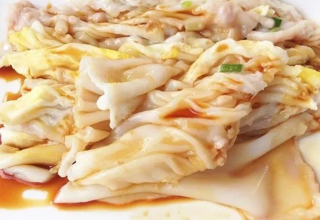 猪肠粉是惠州的传统美食,本地人喜欢把它当早饭,做法很多,蒸、拌、炒、焖,想怎么吃就怎么吃。