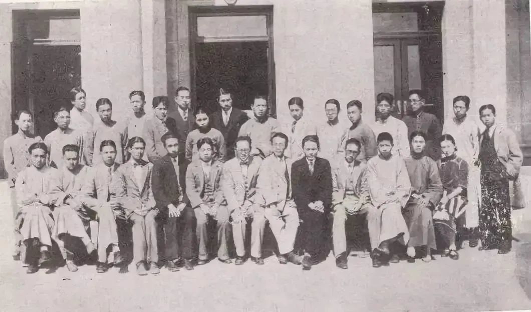 王伯群(二排站立者右九)与保志宁(前排坐者中)和大夏大学教职员工合影