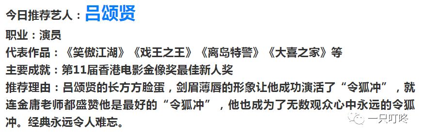 吕颂贤|笑傲江湖的令狐冲 一只叮咚 港台男星 2019-03-12 20:00:55 1217 创作不易,用心坚持,欢迎请BaGua喝几杯爱心咖啡!打赏并支持本文 打赏并删除本文 点击蓝色字关注我们!↓↓↓点击链接阅读原文,了解更多明星资讯!明星简介|陈锦鸿、吕颂贤、黄安 创作不易,用心坚持,欢迎请BaGua喝几杯爱心咖啡!打赏并支持本文 打赏并删除本文 感谢您的支持鼓励,我会继续努力的!文章地址:用户邮箱:打赏金额:USDT 请输入数字点击”去打赏“,即可进行打赏支持本文章哦 吕颂贤 About the Author 一只叮咚 功能介绍:明星经纪人,承接明星代言、商演等一切关于明星的演艺活动。 不定期发布明星资讯,娱乐简报。我可萌可暖可调戏哦。 Related Posts 明星简介|伍嘉成、尤长靖、朱正廷 2019-03-21 20:00:02 游鸿明|五月的雪你见过吗? 2019-03-21 20:00:02 魏晨|SENSE 2019-03-16 20:00:17 欧阳震华|妇女之友、师奶杀手 2019-03-12 20:00:55 吕颂贤|笑傲江湖的令狐冲 2019-03-12 20:00:55 发表评论