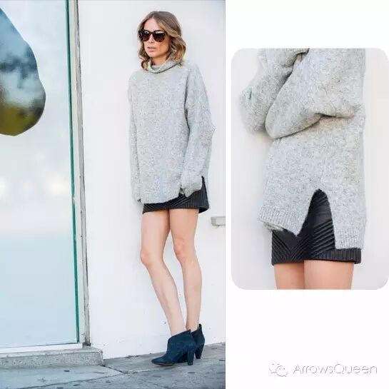 毛衣宽身的慵懒和皮革自型随性的个性风格,这样简单的穿搭不仅身心方便还很舒适。