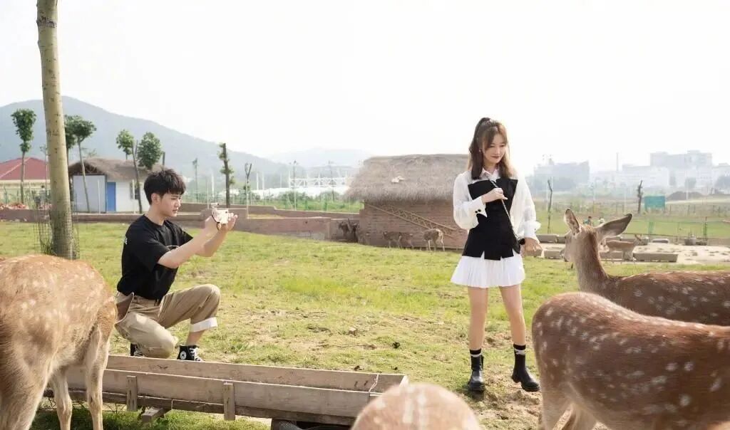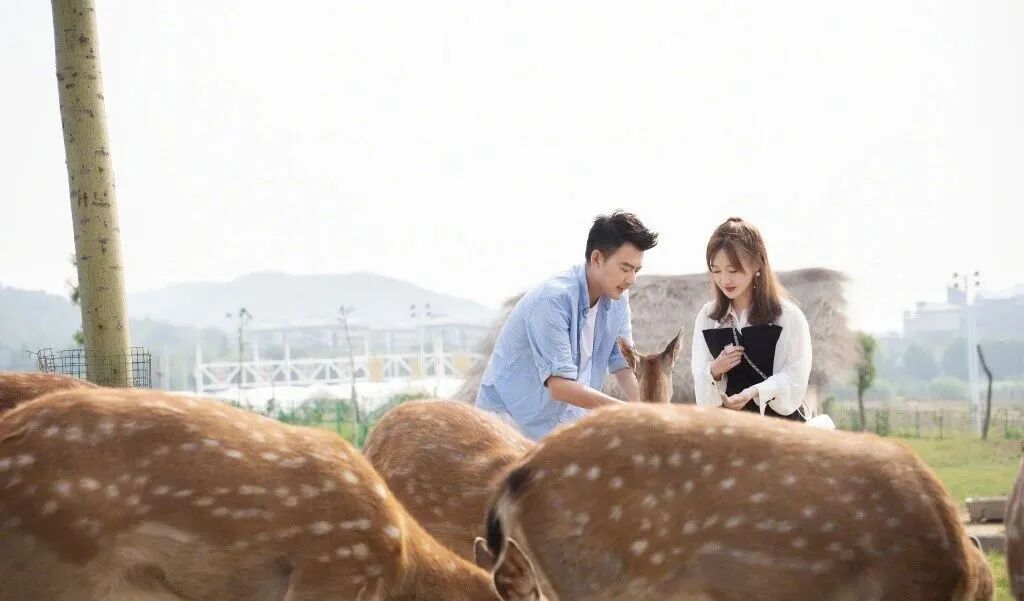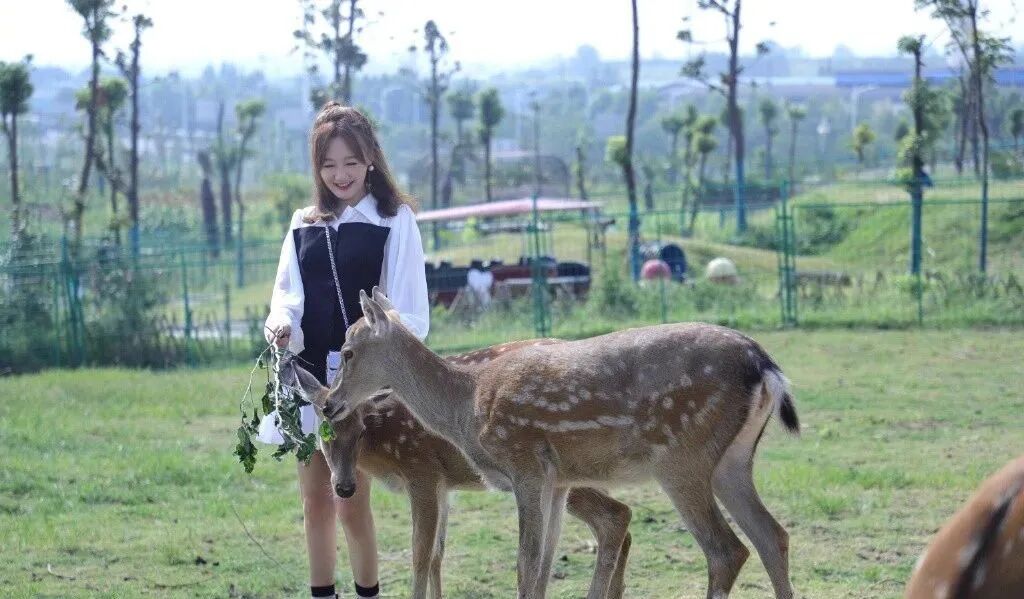 42岁薛佳凝太惊艳,穿透视衬衫裙大胆喂小鹿,电线腿女生看酸了