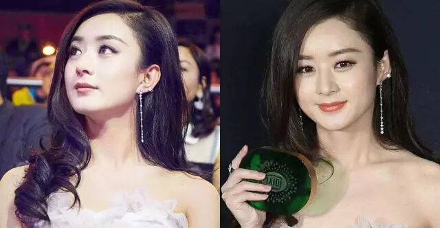 不过呢,赵丽颖的脸型属于圆中带些许弧度小巧下巴,其实戴圆形的耳坠也没有太大问题。要是像包子脸界的另一位扛把子陈妍希这样圆得比较彻底的话,戴长形的耳坠就真的是不二之选了。左图戴的圆形耳环好比一个参照物,让人对照着看她的脸是有多圆润