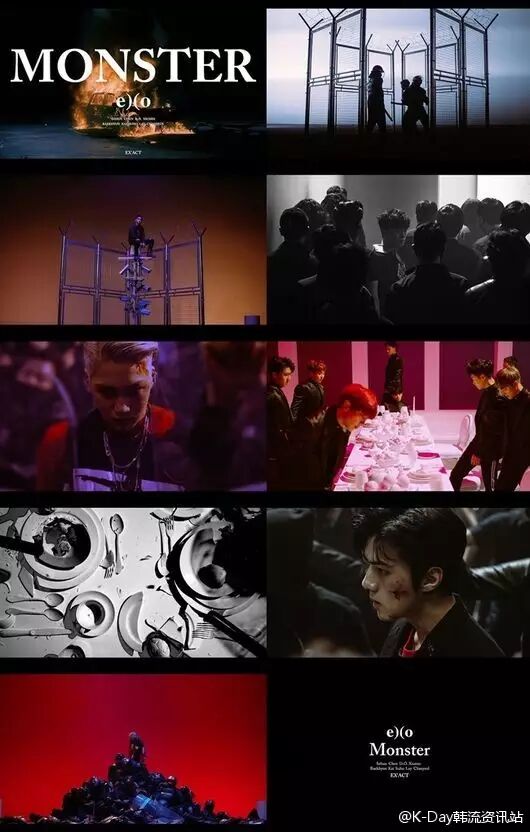 EXO9日即将出售正规3辑《EX'ACT》,公开了双主打《Monster》和《Lucky One》的预告。