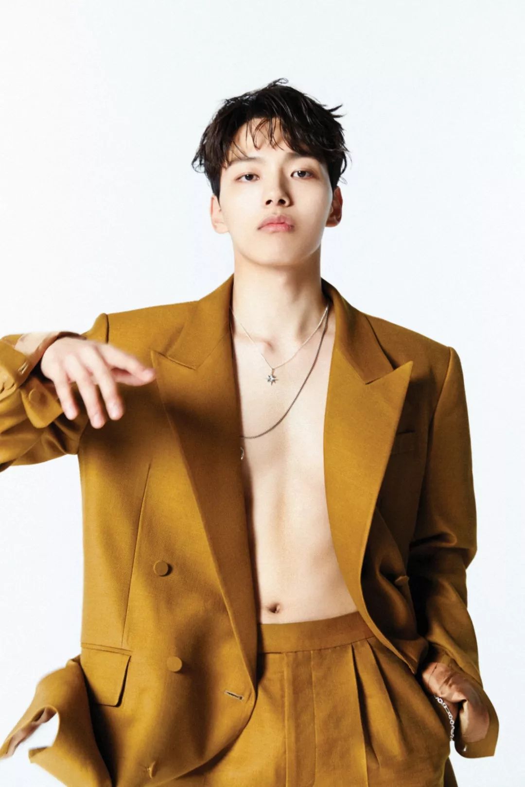 재킷 한에 상의는 아무것도 걸치지 않은 동방유행 화보. 당시 소년의 이미지를 벗고 거칠고 남성적인 모습을 표현해줬어요