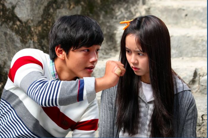 吕珍九13岁时就在SBS电视剧《王女自鸣鼓》中出演,饰演了郑京浩的童年角色,小小的年纪就和陈智熙拍了kiss戏,现在看起来也觉得很可爱。