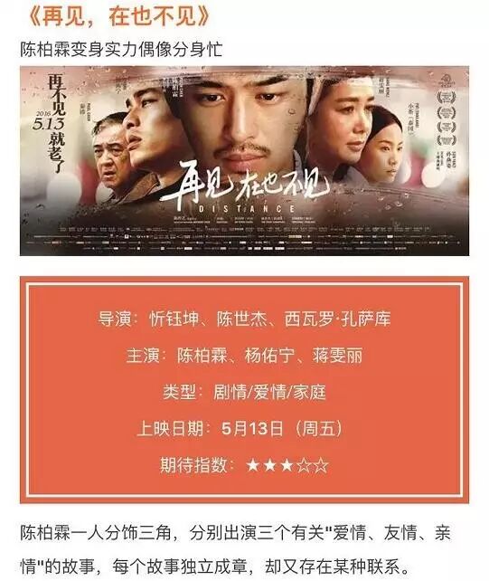 当然,陈柏霖演技是否能在三个故事的三个角色间游刃有余的塑造出差异性,将在很大程度上决定全片的质量。