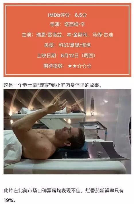 "本周新片推荐"又来与小伙伴们深刻交流啦!本周(5.9-5.15)将有7部新片上映,两部“脑洞”大开的好莱坞新片撞了“题材”,谁也不服谁“正面刚”起来了。不过华语片这边就显得有点底气不足,除了蒋雯丽和陈柏霖的“姐弟恋”有点神奇以外,其他的……