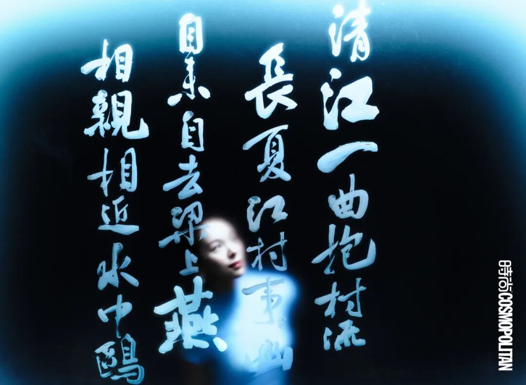 江一燕:这次拍摄里印象最深的一个画面是当时摄影师找了一首诗,然后这首诗里面正好有我名字“江一燕”这三个字。我非常惊喜,感到非常用心。拍摄时我就站在这首诗的背后,就有一种墨客的感觉,好像你站在背后非常冷静地看着世间的一切,看着江湖变幻,但是你依然是你。
