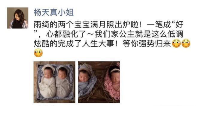 就像杨天真的说的,张雨绮的确是非常低调的但是又炫酷的完成了人生大事,虽然生双胞胎并不少见,但是能够一笔成好还是比较难的。虽然一直以来张雨绮的感情生活好像并不是很顺畅,但是从女人的角度来说,她的确是美得很与众不同又特立独行的。