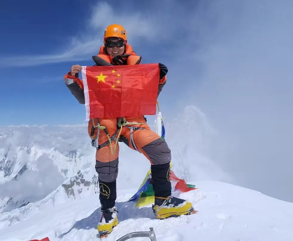 2022年5月14日,何静登顶世界第一高峰珠穆朗玛峰。(受访者提供)