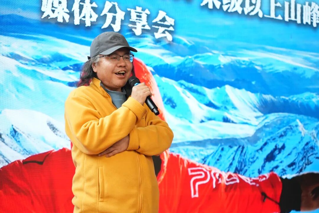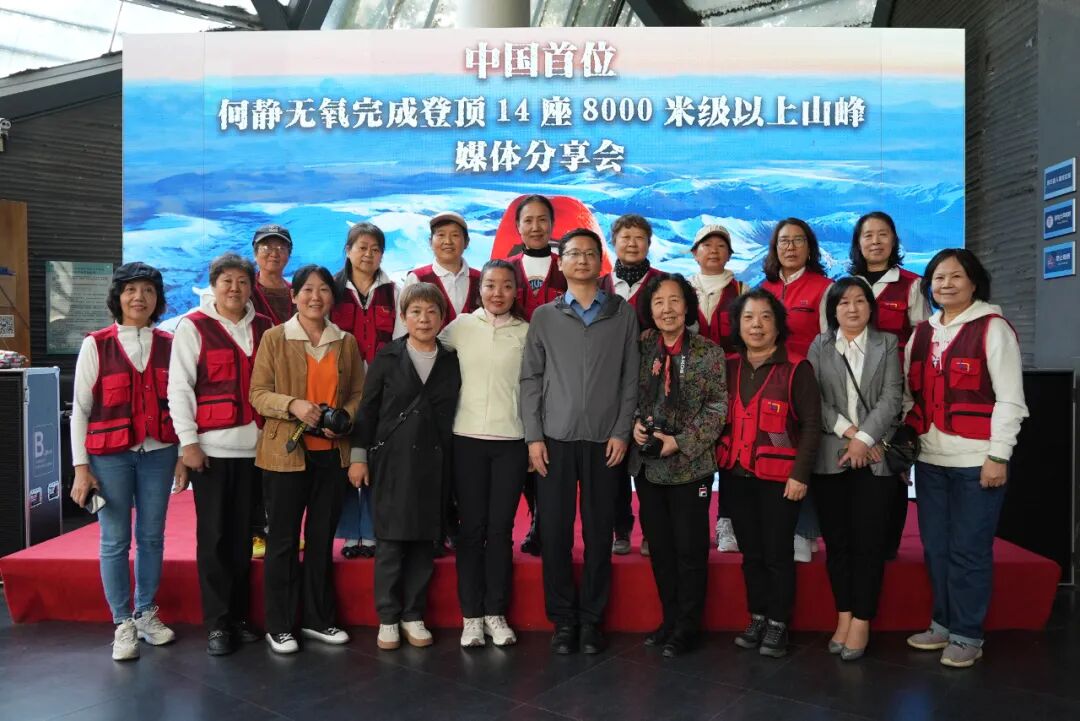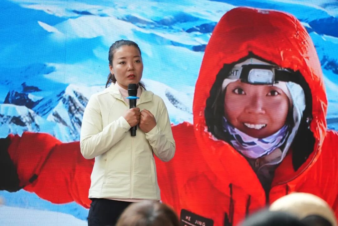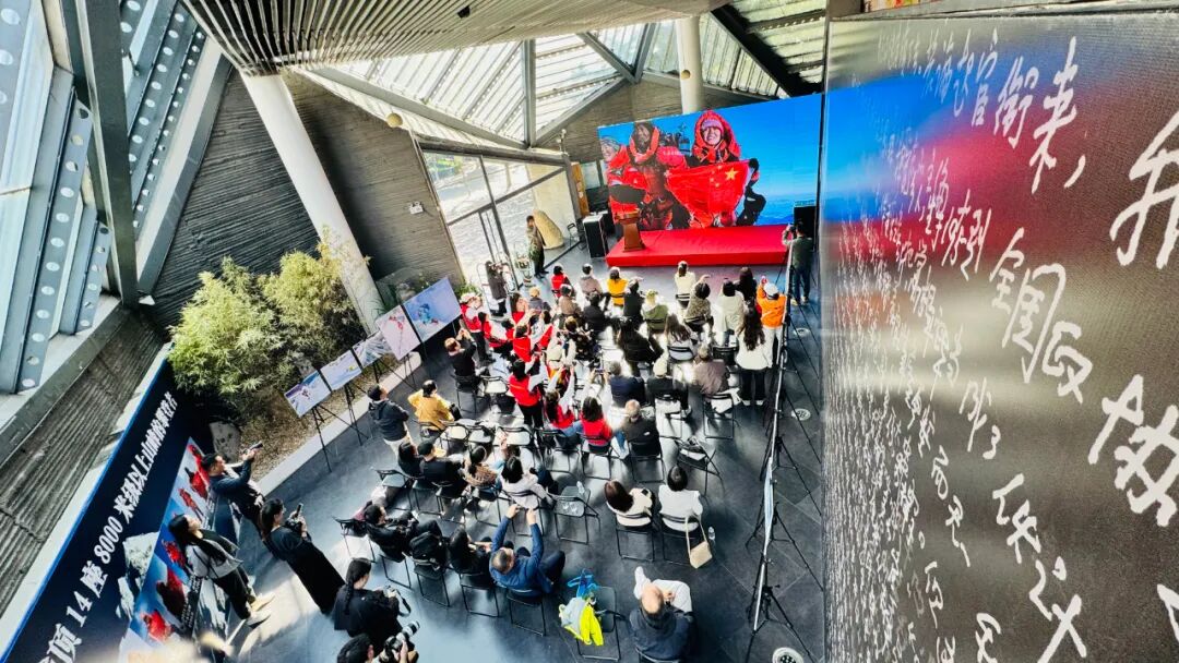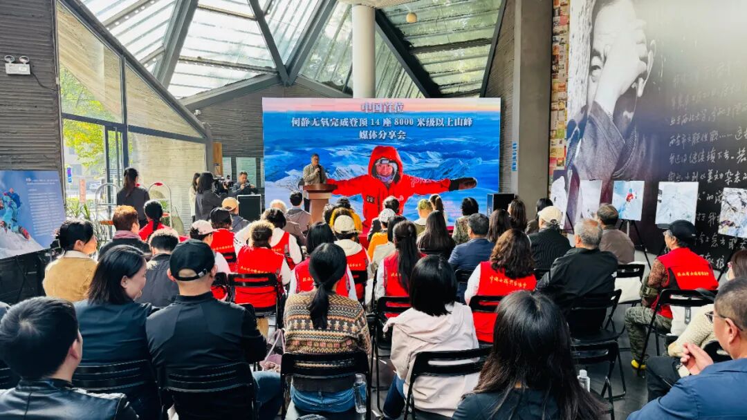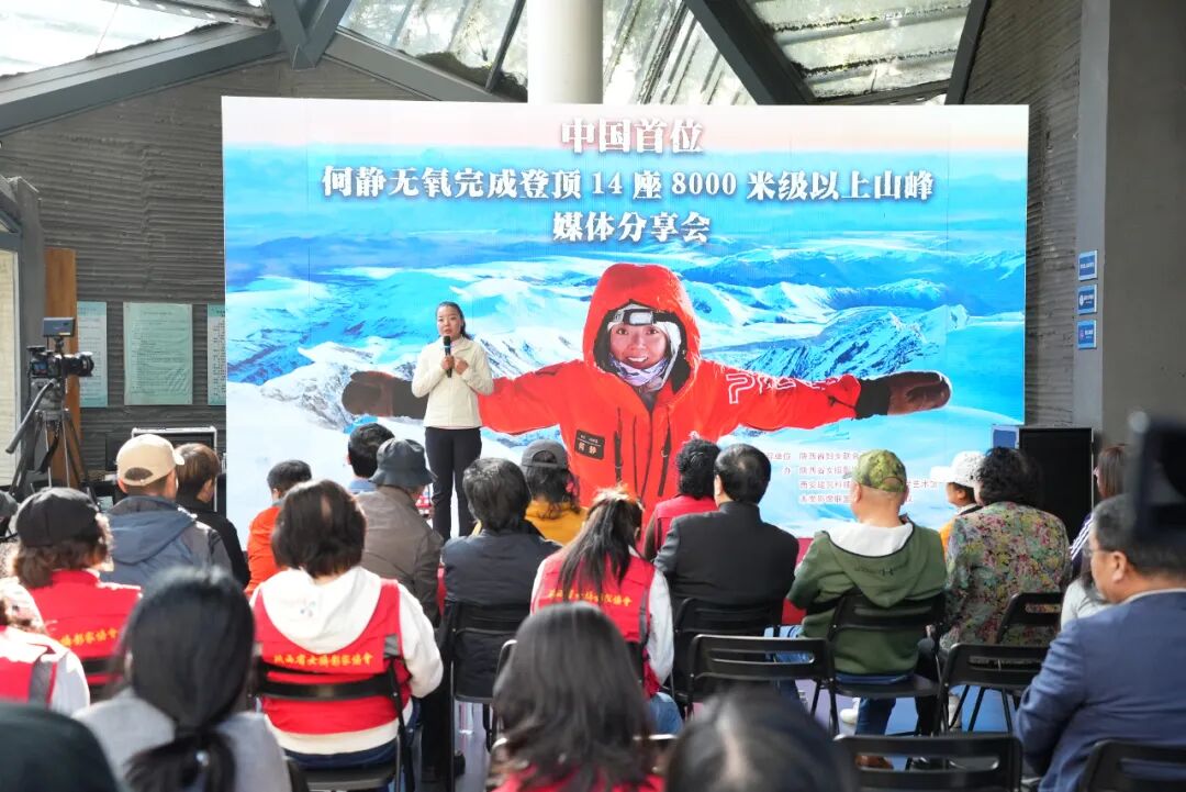 中国首位无氧完成登顶14座8000米以上山峰的攀登者何静媒体分享会现场。