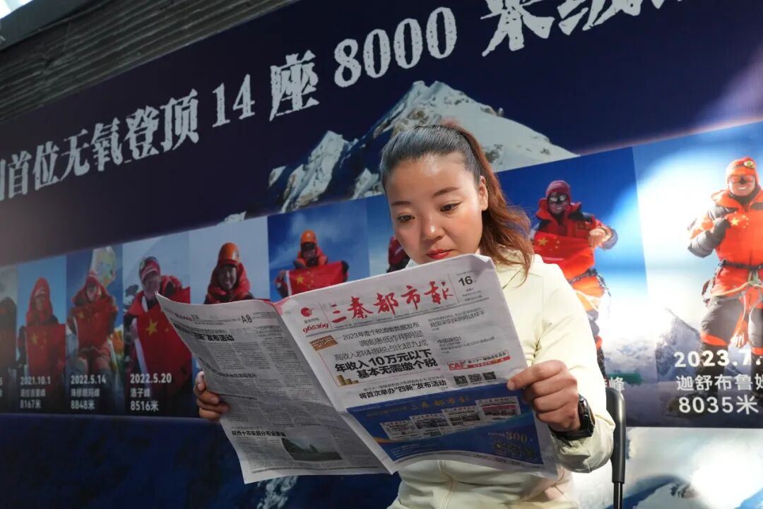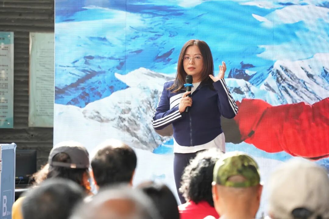 陕西省女摄影家协会主席山新莉代表女摄影家协会对何静的登山壮举表示祝贺。