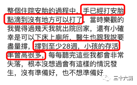 事实上,王棠云的早产早有征兆。在怀孕的前期,王棠云就一直在打安胎针,手都已经打到没有地方可以打了。医生叮嘱她至少撑到28周,孩子的存活率也会高很多,让她非常失落。