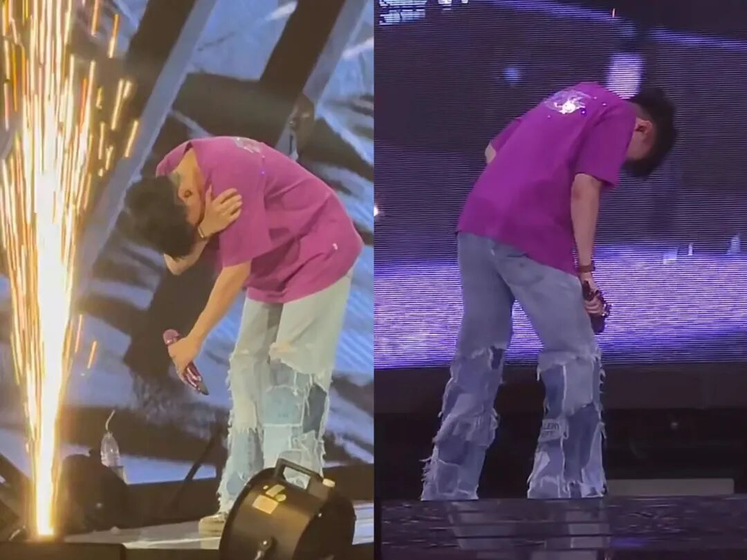 而之前的厦门演唱会上,他更是一度痛到背对粉丝,弯腰捂住肚子,身体更是几次不能直立行走。