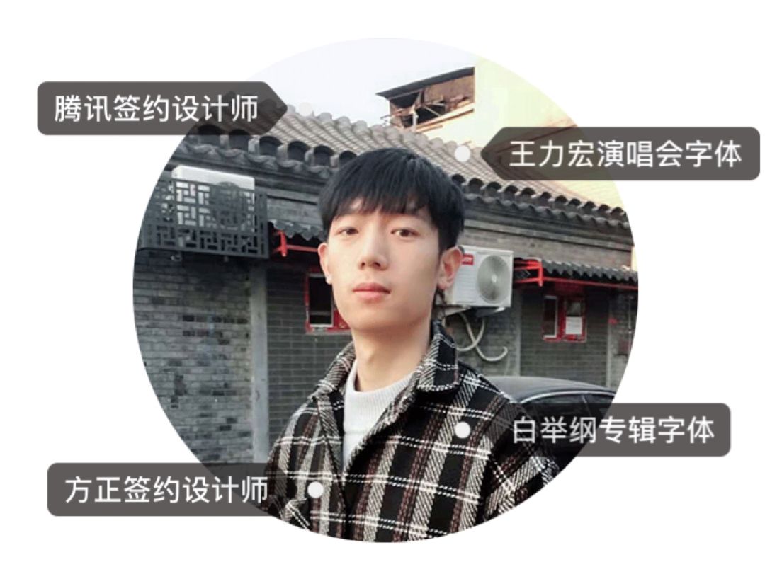 自由设计师,方正签约字体设计师,同时还是腾讯QQ空间签约设计师,自学设计两年作品就入围靳埭强设计奖,一年时间成为站酷首推设计师,因为对字体的性格有自己的理解,因此自成风格,并先后与明星王力宏、白举纲团队合作。