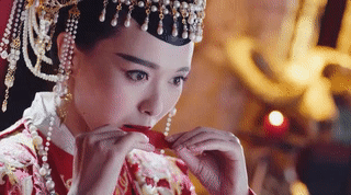 《锦绣未央》里,唐嫣终于得以大婚时,曾亲自为自己印上红唇,不再以清淡的樱唇示人。