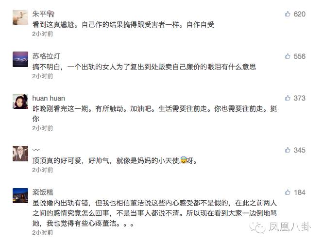在小妹看来,董洁为离婚落泪,是在遗憾自己生命中爱情的缺失,无可厚非;但当她为自己而感慨的时候,有没有想过顶顶的感受呢?