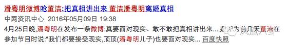 更令人大跌眼镜的是,潘粤明发了一条秒删的微博,似乎在暗指董洁撒谎: