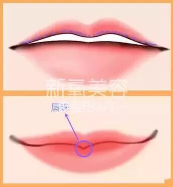 丘比特弓:上唇有两个唇峰,在两峰之间的部分还会有一个唇珠,这样上唇下缘就会呈现弓形。