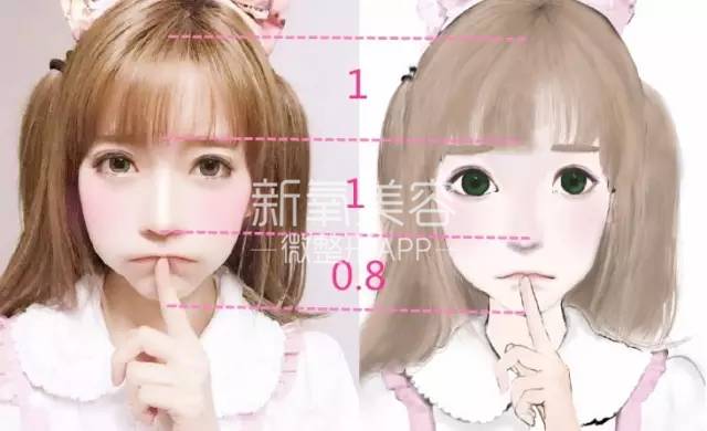 而动漫少女的脸下庭稍稍偏短,三庭比例为1:1:0.8,这也是韩国最新的审美标准,这样的脸蛋会更具亲和力,也就更讨喜耐看啦。