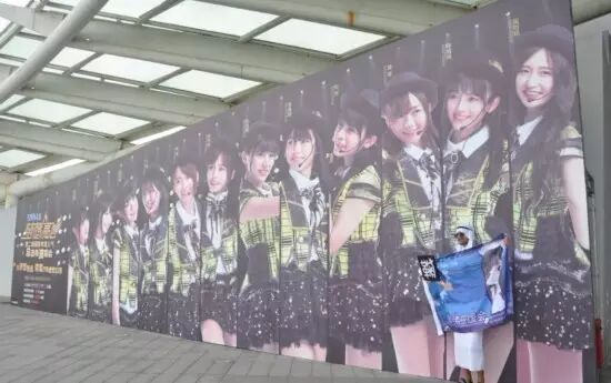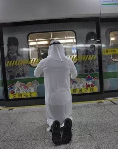 于是,就上演了一出中东土豪抱着一块带有鞠婧祎姓氏的牌子,到现场和鞠婧祎的宣传照片合了张影的戏码。