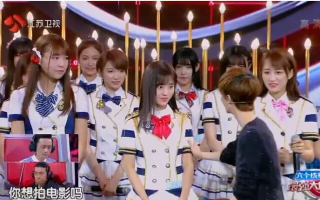 接着就出现了被小四邀请拍电影的一幕,其实现场情况是,主持人问小四,SNH48这么多人如果选一个拍电影你选谁,然后小四就走向SNH48看了一下,选了鞠婧祎。