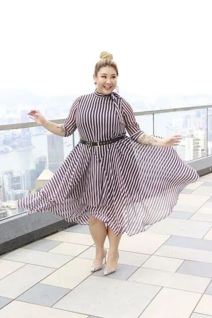 作为微胖人群中的一员,在娱乐圈发展的郑欣宜,有钱又可以找专业的形象设计师,时尚造型估计比普通微胖妹子多太多了,而且说起来也可以算是微胖界的穿搭范本了。一袭条纹衬衫裙,不宽不窄的条纹正好可以起到视觉显瘦的效果,利用条纹不同的拼接,加强显瘦效果,还格外时髦有层次效果呢。