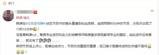 节目组对易烊千玺的妥协,也让韩庚的粉丝看到了希望,以为只要在微博上闹事儿,就可以改善偶像在《这!就是街舞》的地位!